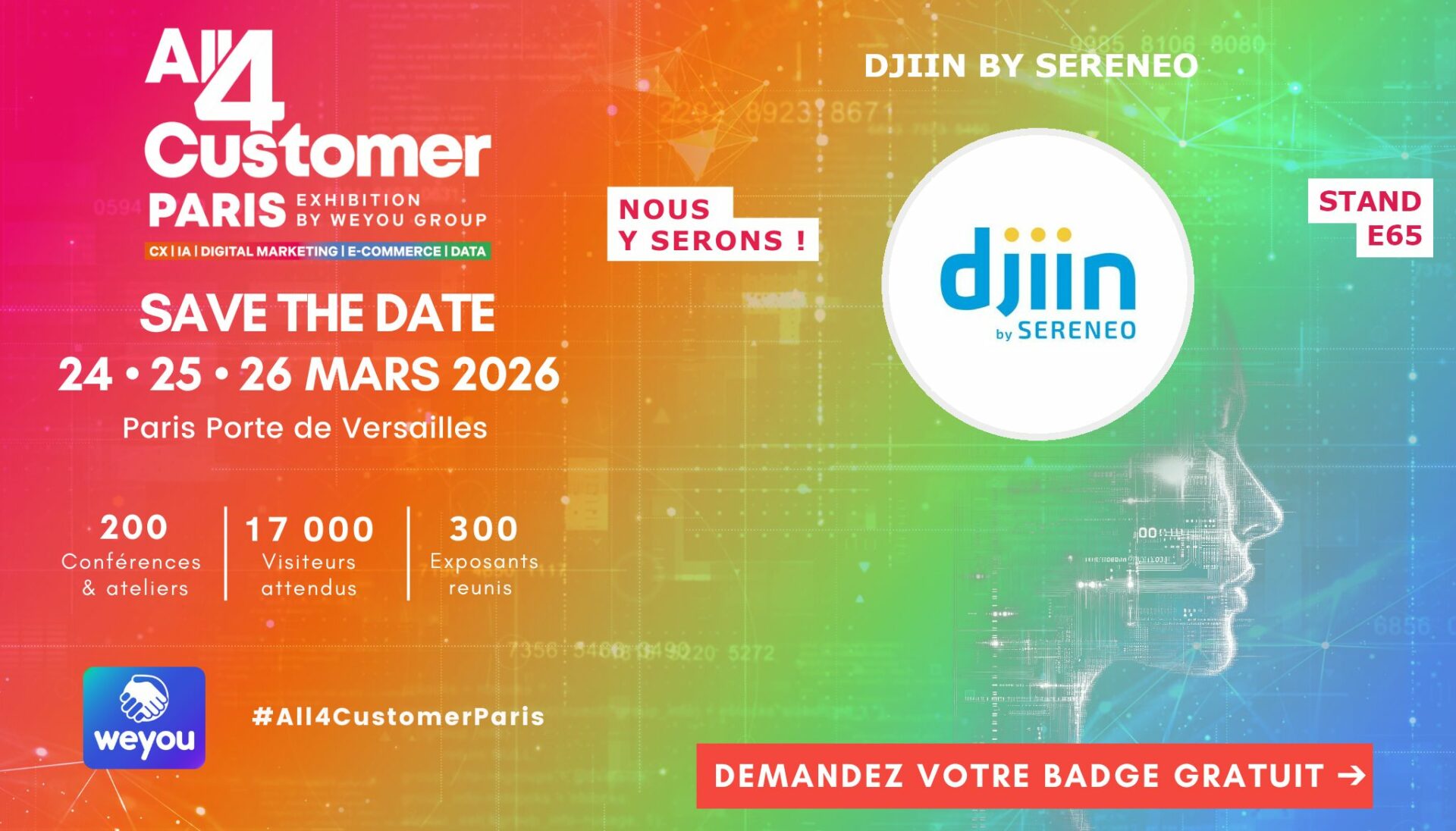 L’équipe Djiin by Sereneo est prête pour échanger sur l’automatisation et les chatbot, callbot, mailbot et solution conseiller augmenté au salon Stratégie Clients 2023