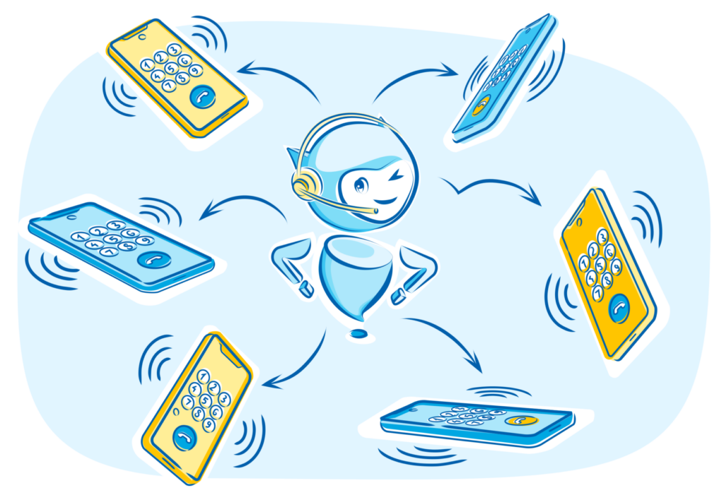 En remplacement d’un SVI, le callbot répond au client dont il prend l’appel soit de façon systématique, soit pour absorber les flux additionnels liés à un pic d’activité ou en débordement.