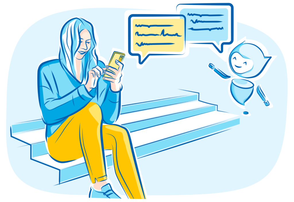 L’agent virtuel conversationnel interagit en langage naturel à l’écrit de façon synchrone avec le client pour répondre à ses demandes.